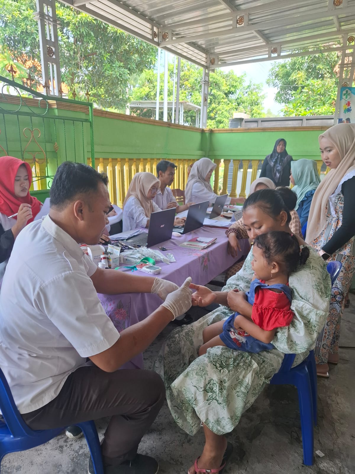 Melalui kegiatan ini, masyarakat mendapatkan kesempatan untuk melakukan pemeriksaan kesehatan dasar secara gratis, mulai dari pengecekan tekanan darah, pemantauan kondisi umum, hingga konsultasi singkat terkait kesehatan. Selain pemeriksaan, petugas juga memberikan edukasi mengenai pola hidup bersih dan sehat agar masyarakat dapat menerapkan langkah pencegahan penyakit dalam kehidupan sehari-hari.